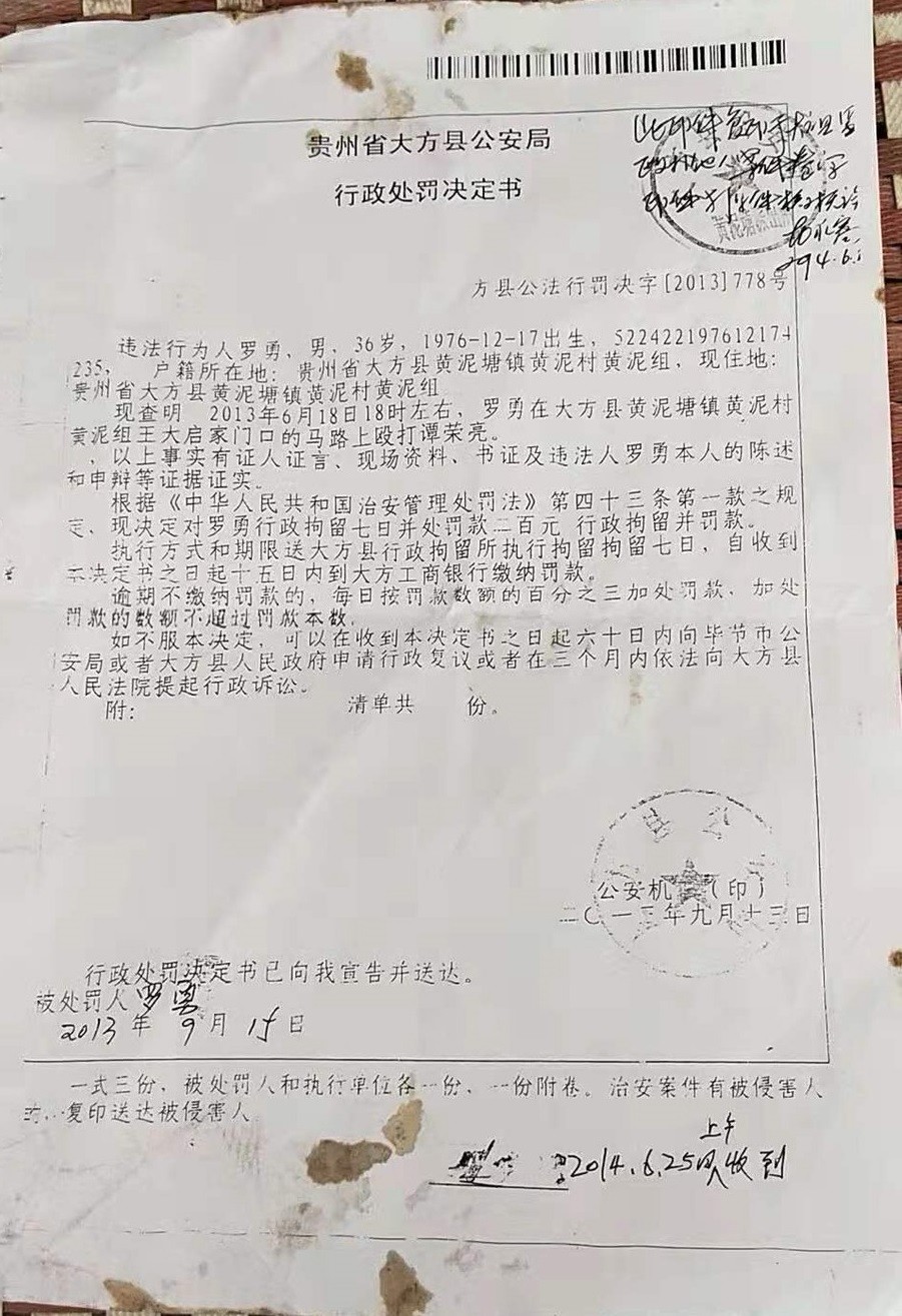 中国正义反腐网-《反腐廉政月刊》杂志社北京讯:贵州大方县黄泥塘镇村民谭荣亮,多年前因镇政府整脏治乱工作中被政法委书记罗锡贵暴打致残,三个孩子至今无法入学。当地警方逼他签同意书销毁信访证据后才能让孩子上学。