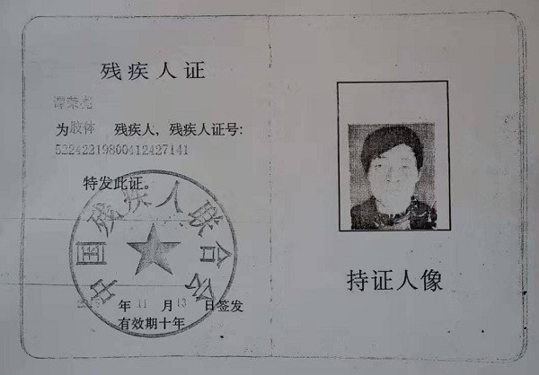▲贵州残疾访民谭荣亮因维权上访,三个学龄孩子拿不到证明至今无法入学。(受访者供图)