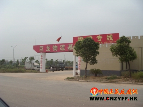 非法圈地的巨龙集团,写着广告“巨龙物流基地”“福建专线”   程敏/摄