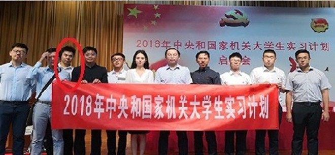 图为2018年7月,牟林翰入选国家部委进行暑期实习。(来源微博图片)