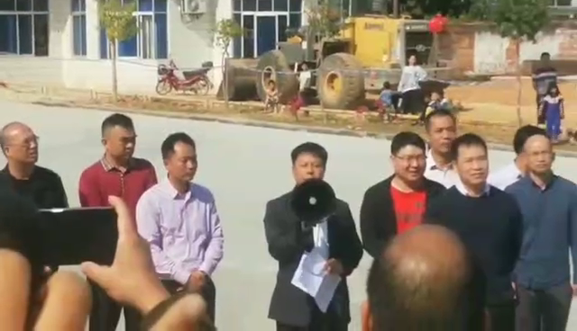 实拍视频:文楼镇党委书记李伟华带领一众官员及律师会见民众,并拿着扩音器回应诉求承诺:永不建火葬场。