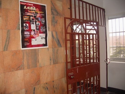 进入这个南通市法制教育学习班,第一道楼梯要经过一栅铁门,从楼梯进入走廊又有一栏铁门,然后从第三道铁门才能进入房间。有专人日夜看管,插翅难飞。这不是地地道道的“监狱”吗?