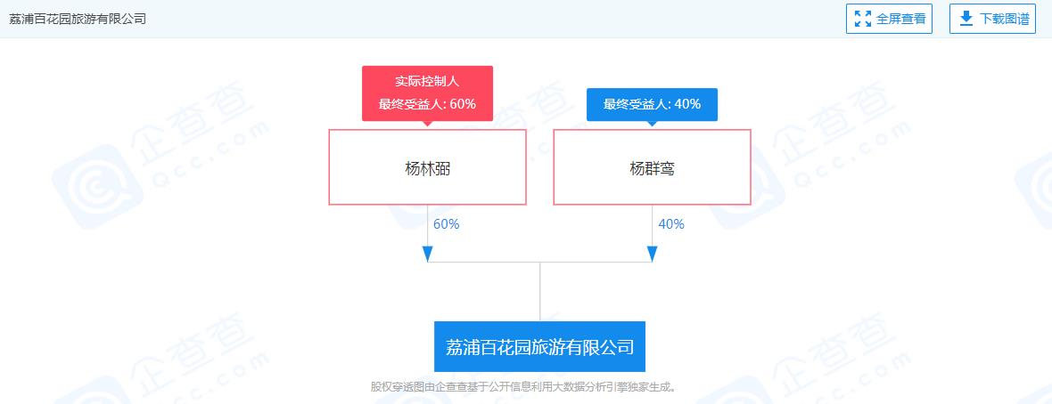 ▲荔浦百花园旅游有限公司,杨群鸾、杨林弼俩人多家企业(企查查网站截图)