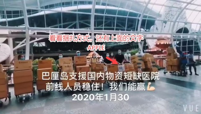 印尼华侨在巴厘岛扫光了所有库存,通过空运尽快发回国内,其中有一个最有标志性的箱子,上面写着Apple,还有苹果的图像,写着“巴厘岛苹果一起为中国武汉加油”,然后箱子的包装是纵向两道,横向两道,包扎得非常细心。下面附上视频截图、照片以及视频,这可以确定是真的吧?