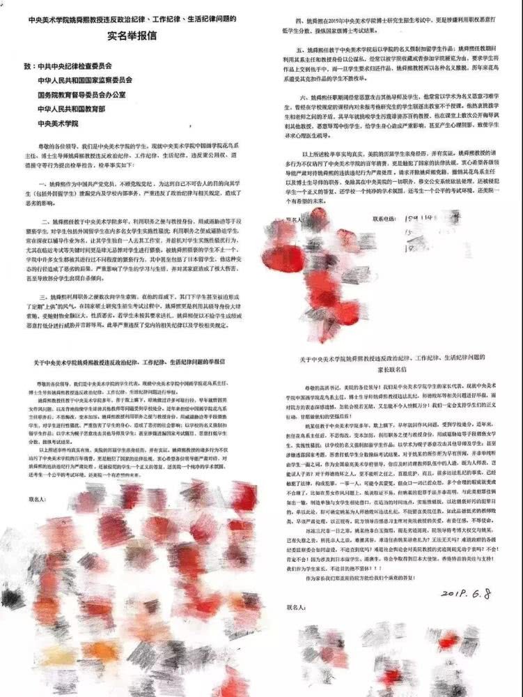 早在今年6月,这些女学生将实名举报信递交给了中央美术学院,但至今校方未作出公开回应,只是对被举报人做了内部处理。几位受害人至今没有收到一份致歉,反而还遭受姚舜熙的威胁和恐吓。