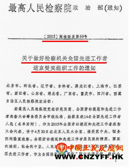 《最高人民检察院政治部(通知)》(2005)高检政发第69号(资料)