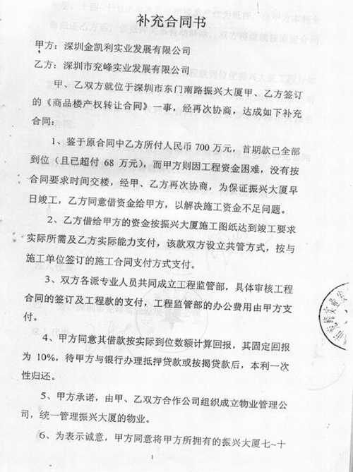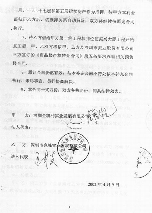 例如:2001年7月23日兖峰公司与多年未年检的圳金凯利公司签订了振兴大厦的商品楼转让合同,价值为2250万元人民币。2002年3月31日前付款768万元,而这笔钱并不是兖峰公司的投资,而是兖矿集团驻深圳办事处的资金。2004年4月9日又以施工资金不足为名借出150万元,共将兖矿集团资金移走918万元。既是如此,到最后竟然没有一笔付给振兴大厦所有人的。最终,这笔资金因振兴大厦原股东之间发生经济纠纷被判定无法收回。
